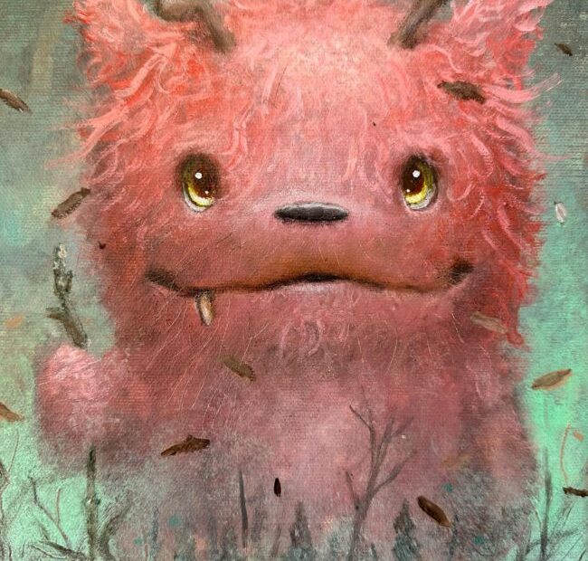 Working mainly in acrylic (and more recently oil) on canvas, he builds scenes where nature, time and inner emotion overlap—bears, birds, insects and celestial forms become symbolic characters in quietly strange narratives. His paintings and archival prints are available through his own shop and galleries, and he balances his visual practice with work as a musician.